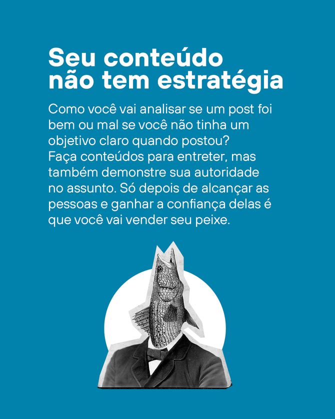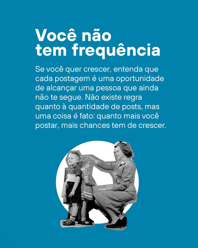 O seu público tem um objetivo único que, geralmente, envolve a execução de várias metas separadas. Ou seja, quanto mais detalhado for o tipo de erro, mais chance de entregar um conteúdo certeiro. No meu caso, o objetivo final é crescer o perfil e aumentar os resultados no Instagram. Para alcançá-lo, é preciso investir em conteúdo, arrumar o perfil e acertar o tom de voz, acertar a estratégia e mais… Esse carrossel é um exemplo de como resolver apenas uma das etapas, que é “arrumar o perfil”.