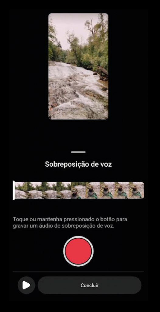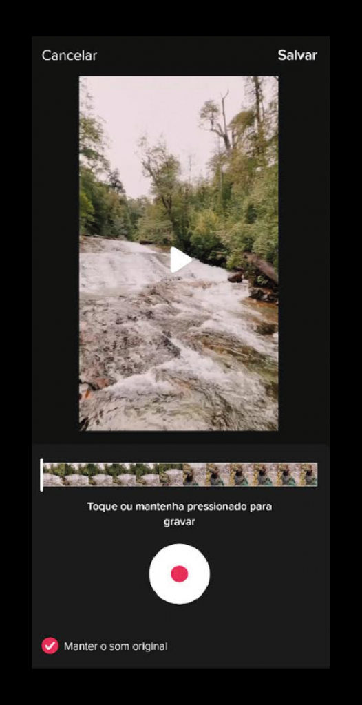 O TikTok também oferece um espaço de edição próprio com alguns recursos a mais do que o Instagram na parte das cenas. Para gravar uma locução basta clicar nessa opção da plataforma, onde você precisa informar se deseja manter o som original dos vídeos ou não já na hora da gravação.